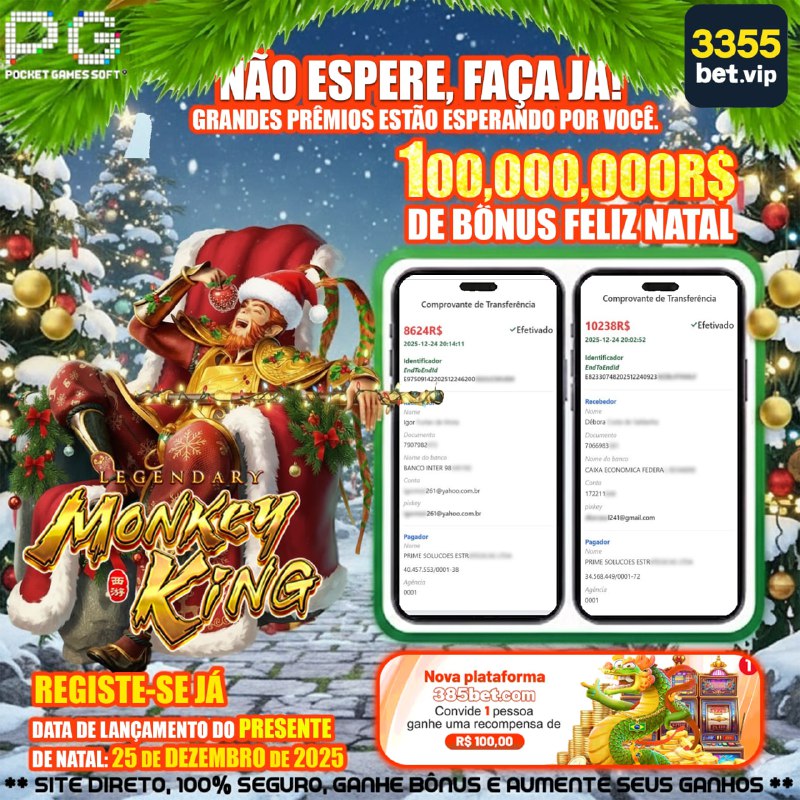 R$ 100 ou mais e fizerem mais de 5 depósitos entre 1º de novembro de 2025 e 31 de dezembro de 2025 terão direito a um bônus em dinheiro de R$ 55,55 milhões, até o máximo de