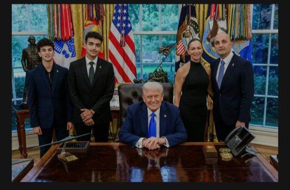 كما يتم أخذ الصور التذكارية لأعضاء الوفد الزائر وهم يحيطون بالرئيس الأمريكي وهو في مكانه وراء مكتبه.