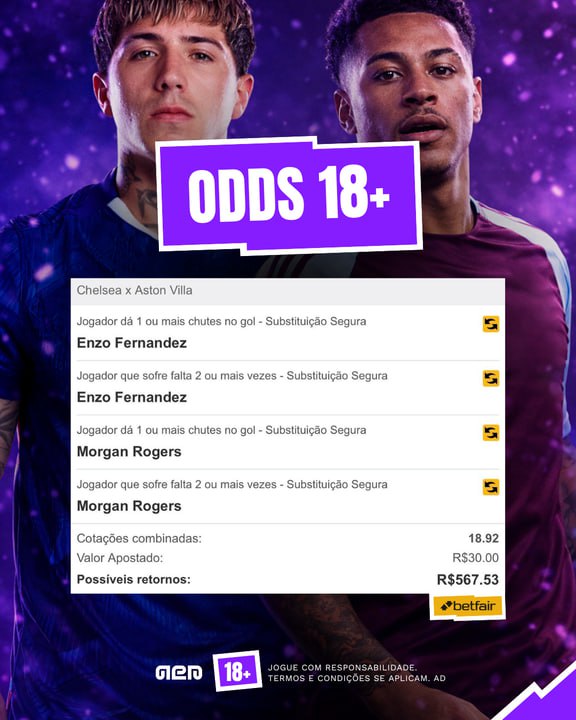 Chelsea x Aston Villa | R$30 vem R$567 Clique aqui para abrir o bilhete pronto.Você precisa de uma conta na Betfair para tentar esse mesmo retorno que eu: