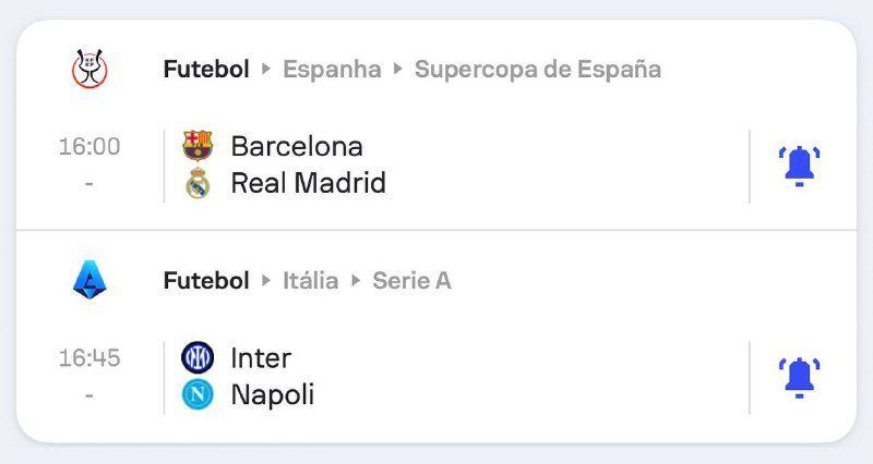 Se liga nos dois jogaços que temos hoje: Barcelona x Real Madrid e Inter x Napoli.