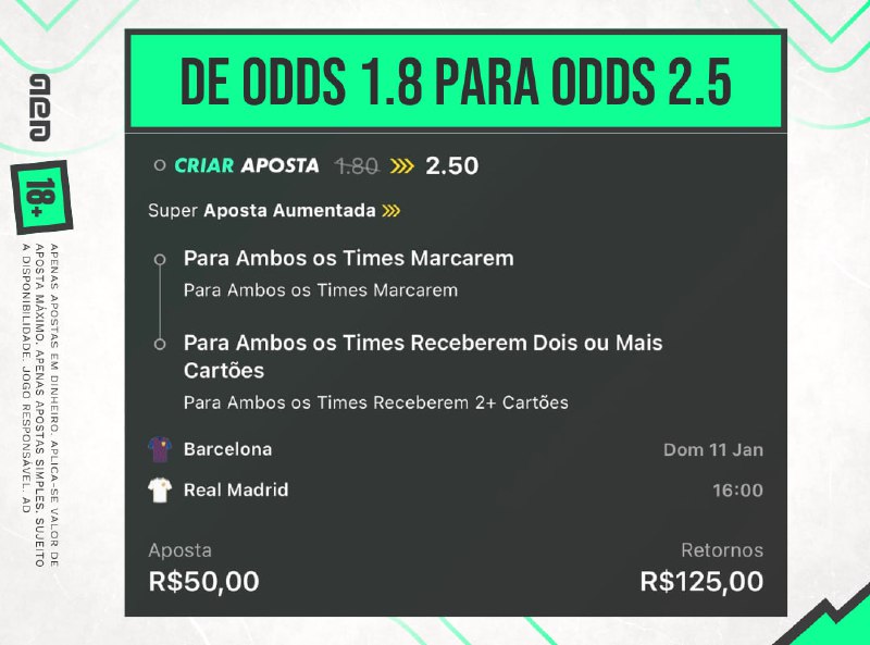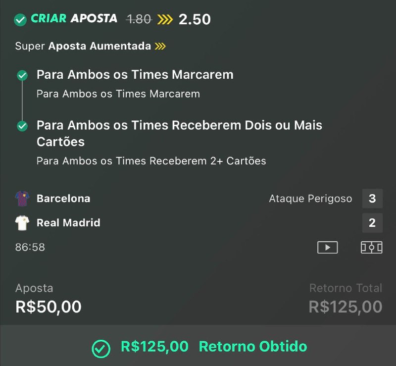 TEM SUPER AUMENTO NO EL CLASICO Vamos mais do que dobrar o valor apostado na bet365 se ambos os times marcarem e receberem pelo menos dois cartões cada. Clica aqui pra criar conta na casa e aproveitar Outras casas oferecem, no máximo, 1.8 nessa seleção.…