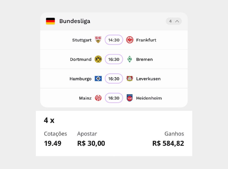 Bingo da Bundesliga | R$30 vem R$584 Clique para abrir o bilhete preenchido.