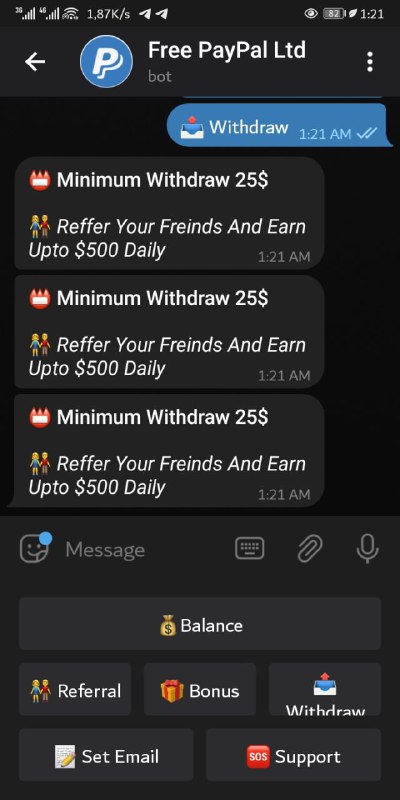 Hey everyone I was testing this PayPal bot but its a scam, I reached $25 but it just showed these messages