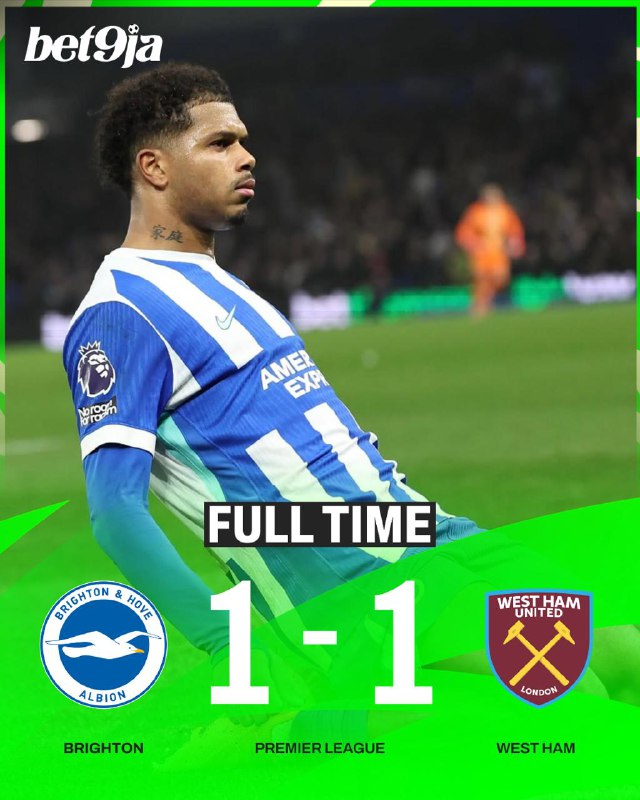 Georginio Rutter’s equaliser cancels out Jarrod Bowen’s opener as Brighton and West Ham share the spoils.