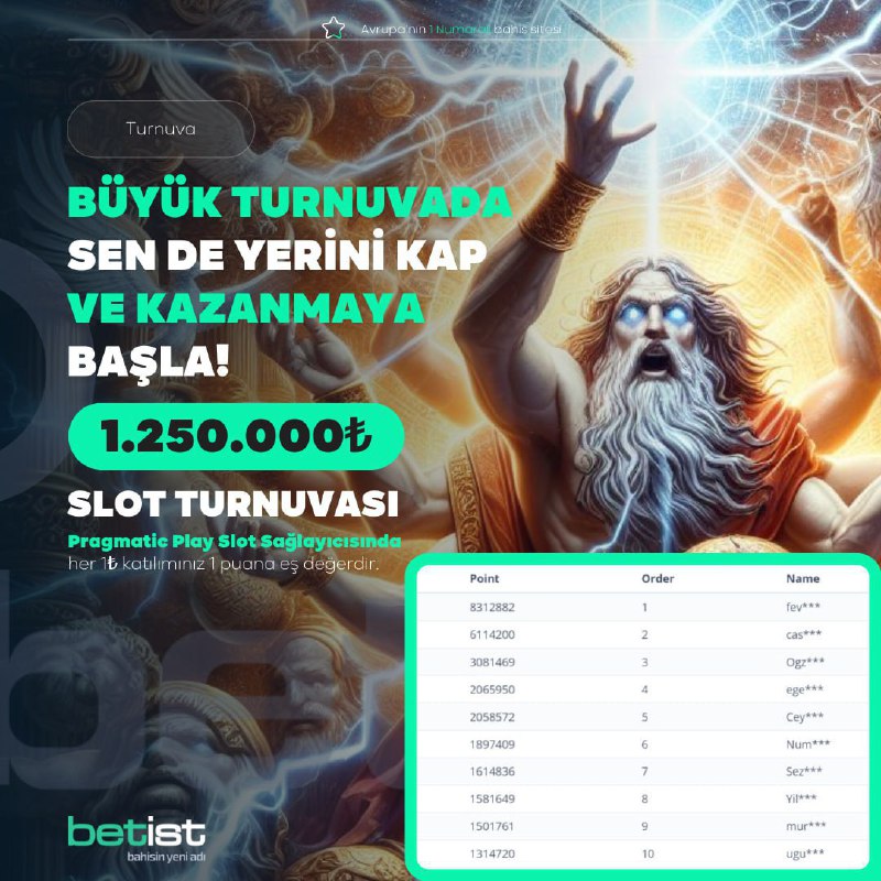 BETİST ÜYELERİNE MİLYON DAĞITIYOR ! Tam 1.250.000₺ Ödüllü Pragmatic Play Slot Turnuvası Sizlerle Tek Katılım Şartı Oyun Oynamanızdır. 8 Mayıs - 31 Mayıs Arası Aktif Olacak Turnuvayı Kaçırma Kurallar ; Pragmatic Play Slot Sağlayıcısında 1₺ Katılım 1 Puana Eşittir. Pragmatic Play Sağlayıcısına Özeldir. Sıralamanızı Anlık Olarak Liderlik Tablosundan Takip Edebilirsiniz. Turnuva Sonuçlandığında 1 Saat İçinde Tüm Ödüller Dağıtılır. Detaylı Tüm Bilgiler İçin Canlı Destek Hattımıza Bağlanabilirsiniz. BETİST GÜNCEL GİRİŞ