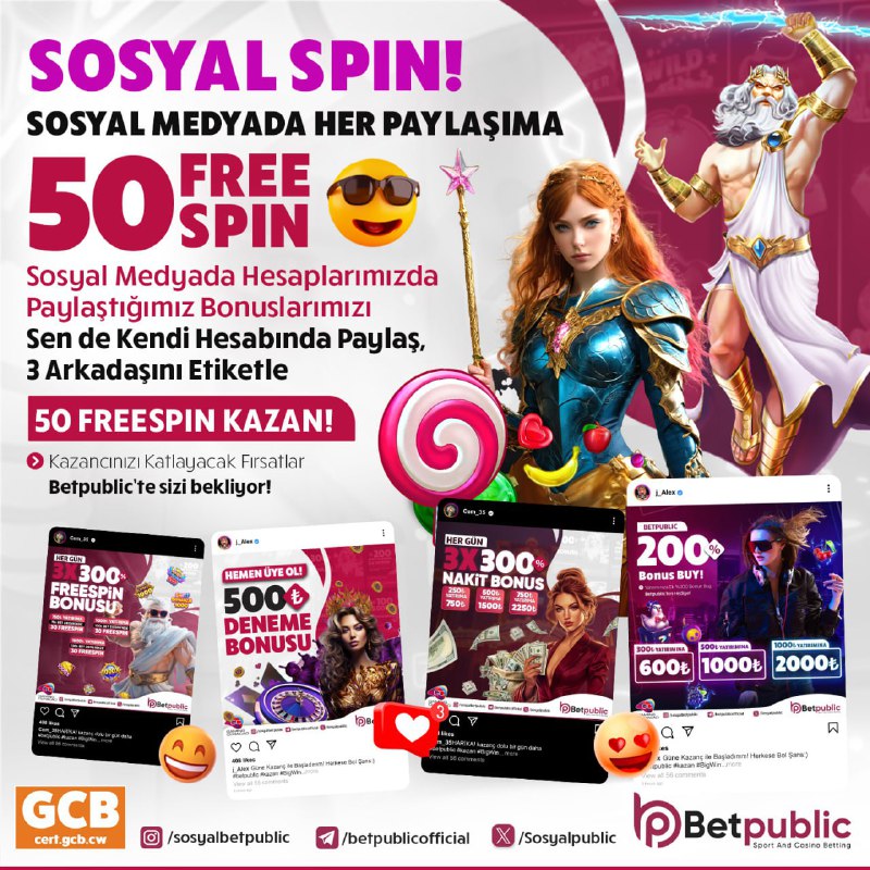 Sosyal Spin 'te Sosyal Medya Hesaplarımızdan Paylaştığımız Herhangi Bir Bonusu Sosyal Medya Hesabınızda 3 Arkadaşınızı Etiketleyerek Paylaşın Hediyenizi Alın ! Detaylı Bilgi Promosyonlar Sayfasında Twitter İnstagram Facebook Betpublic Tv Güncel Giriş : BETPUBLIC