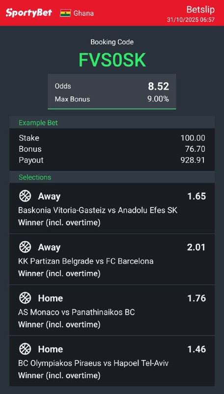 Stake 10 gh and win 44,074,591.70 Booking code posted here https://t.me/+YqyDfcNSuBQxYmY8