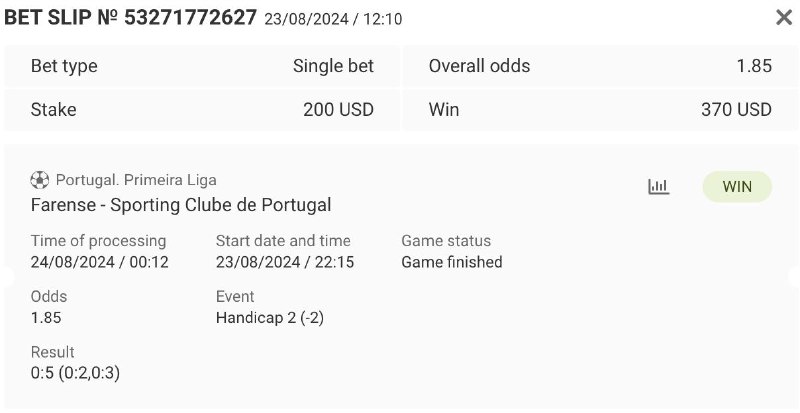 Portuguese League Match Farense vs. Sporting August 23, 22:15 UTC+3 Our Prediction: Sporting to win with a -2 handicap Read full analytics - Analytics Booking Code J5H7V ODDS at Megapari 1.85 Global Site: http://2255151.successcrown.link/…