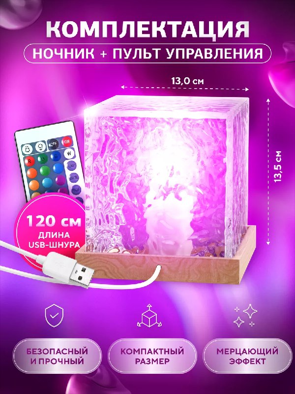 Светильник-ночник куб мерцающий от Cloud Six — создаст уютную атмосферу в вашем доме!