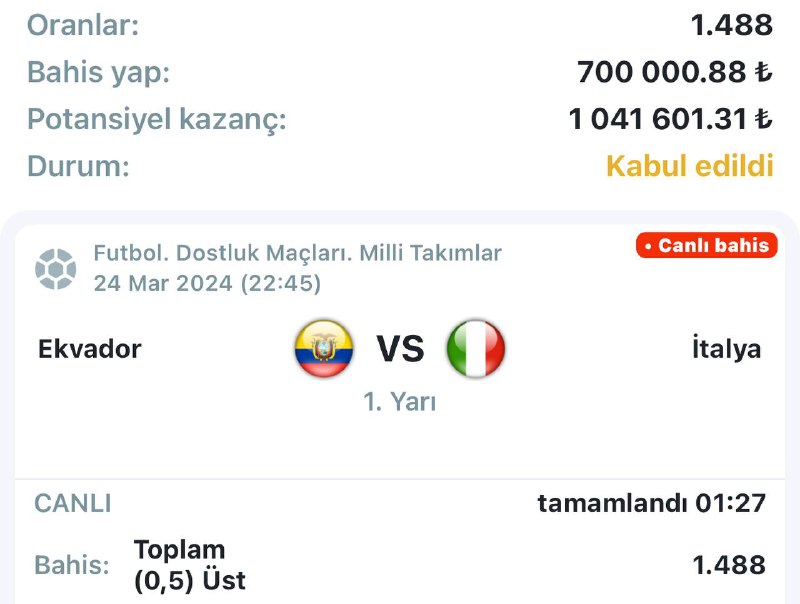 YÜKSEK GÜVENLE ALDIĞIMIZ YÜKLÜ BAHİSLERİMİZ YANILTMADI