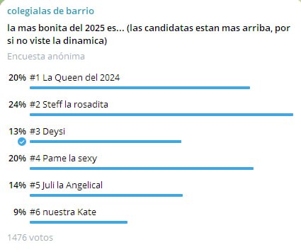 el Resultado de la elección a la mas bonita del canal en el 2025 fue la siguiente: (contados 10 minutos antes subir esta publicación)