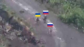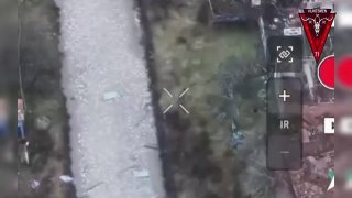 A Russian soldier is hit and severely maimed by a Ukrainian FPV drone, a second FPV drone later arrives which ultimately killed the Russian.