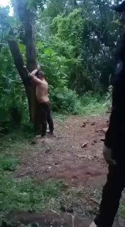 A CJNG cartel member tortures and seemingly kills a man with a flamethrower, somewhere in Mexico.