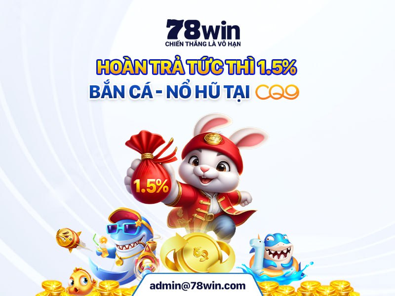 Tất cả thành viên Giải trí 78win khi tham gia đặt cược tại tất cả các trò chơi NỔ HŨ hoặc BẮN CÁ của sảnh game CQ9 không kể thắng hay thua chỉ với 1 điểm trở lên bạn có thể nhận được ưu đãi điểm hoàn trả của Giải trí 78win mức thấp nhất lên đến 1.5%, đây là một bước đột phá mới của 78win dành riêng cho Quý Hội viên tham gia tại CQ9, giúp cho Quý Hội viên được trải nghiệm sảnh game chất lượng và nhận được mức hoàn trả cực kỳ PHÊ... !!!