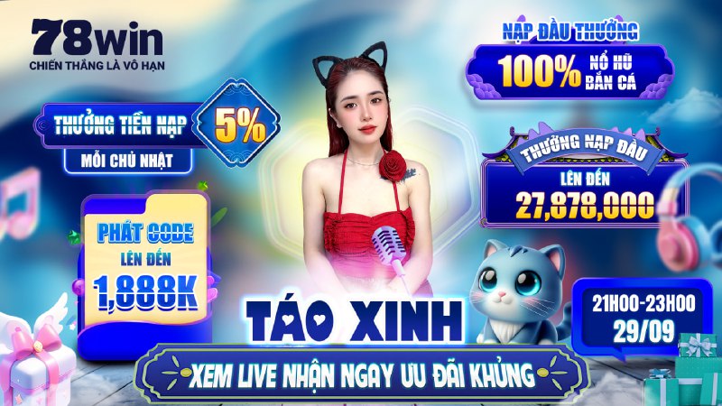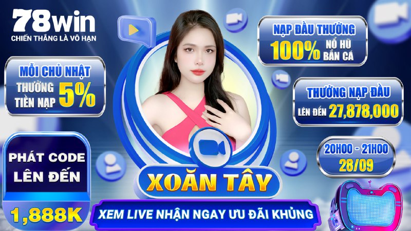 Khuyến mãi áp dụng mỗi ngày và không giới hạn số tiền thưởng ĐẶC BIỆT SIÊU HOÀN TRẢ NỔ HŨ - BẮN CÁ QUÝ HỘI VIÊN ĐỪNG BỎ LỠ NHỮNG PHẦN QUÀ HẤP DẪN TỪ 78win NHÉ ! LIVESTREAM TẶNG CODE MỖI NGÀY : TẠI ĐÂY - NHẬN THƯỞNG LIỀN TAY