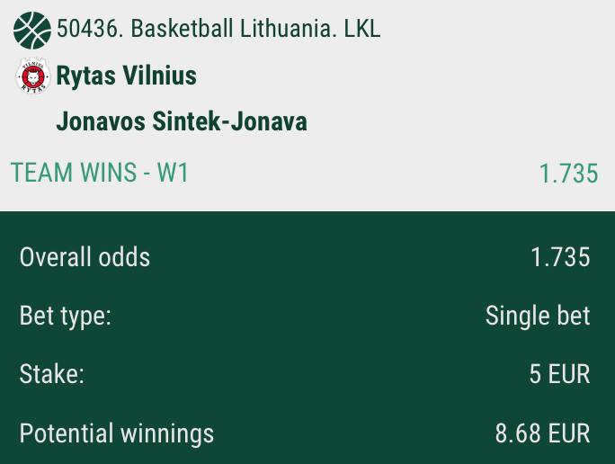 Rytas to win @ 1.73