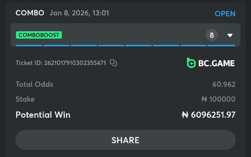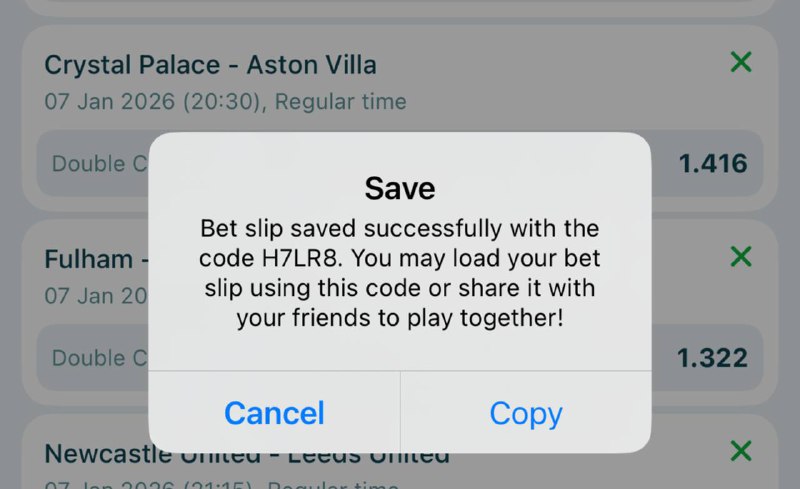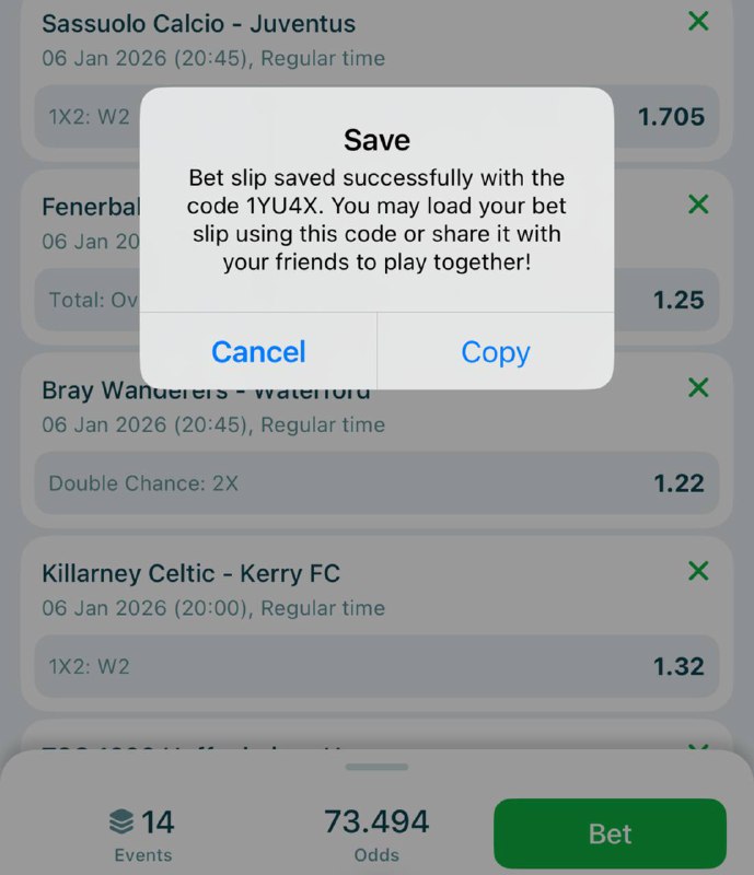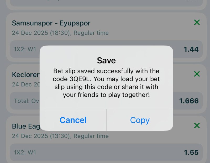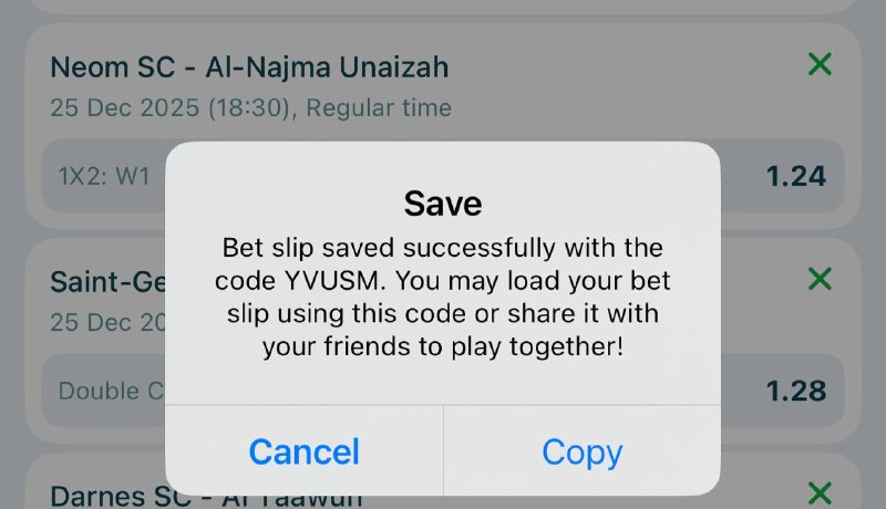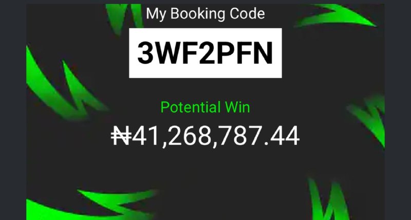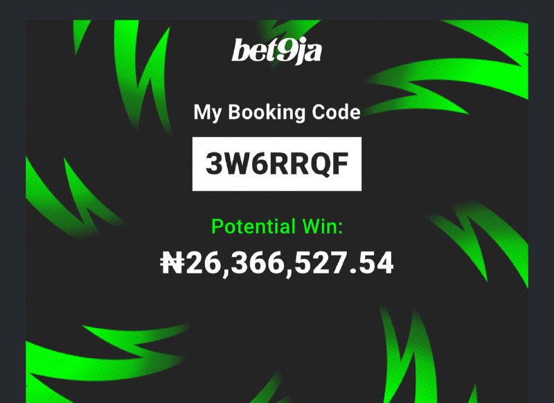 Bet9ja code : 32 odd: https://sports.bet9ja.com/?bookABetCode=3TVPNCJ 10 odd: https://sports.bet9ja.com/?bookABetCode=3TVQFZM 5 odd : https://sports.bet9ja.com/?bookABetCode=3TVTCCW 2 odd: https://sports.bet9ja.com/?bookABetCode=3TVRXSH