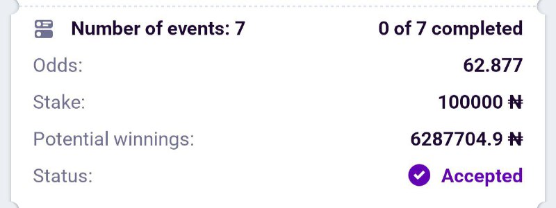 Bet9ja code : 71 odd: https://sports.bet9ja.com/?bookABetCode=3W6MGYN 14 odd: https://sports.bet9ja.com/?bookABetCode=3W6MQSM 8 odd : https://sports.bet9ja.com/?bookABetCode=3W6PY5Z 5 odd: https://sports.bet9ja.com/?bookABetCode=3W6N2BP 2 odd: https:…