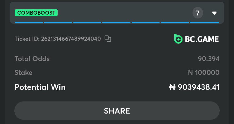 Mega odd (60+ odds) Game on BC Booking code: 16FC7D3