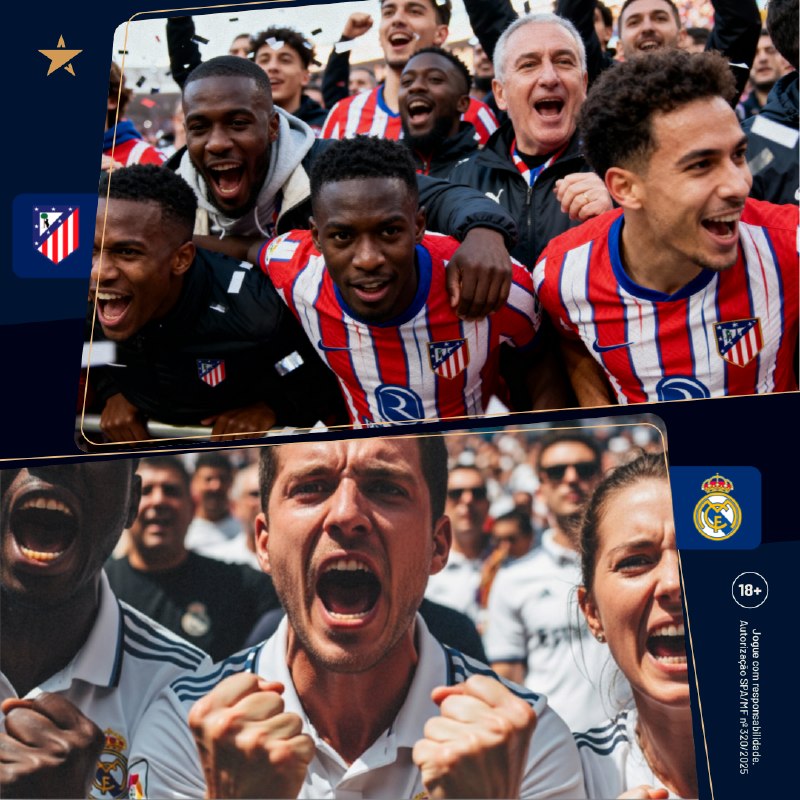 Mais de 6.5Atlético Madrid x Real Madrid• Ambas equipes marcam: S