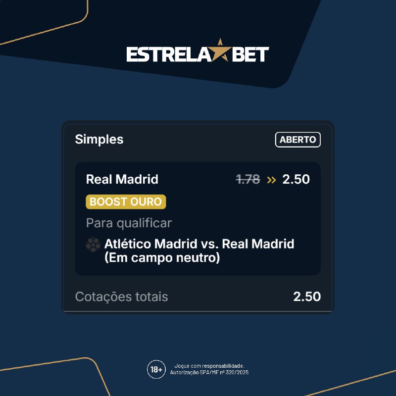 Boost Ouro na Supercopa da Espanha pra quem tá chegando agora:›› Clássico de Madri em jogo único. Decisão não espera.