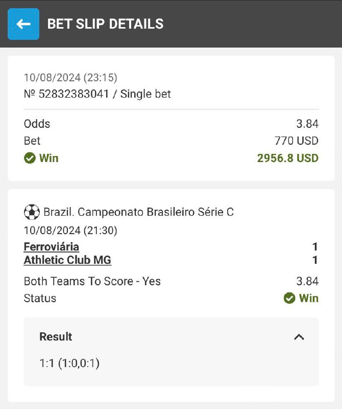 Congratulations who bet on last 2 games