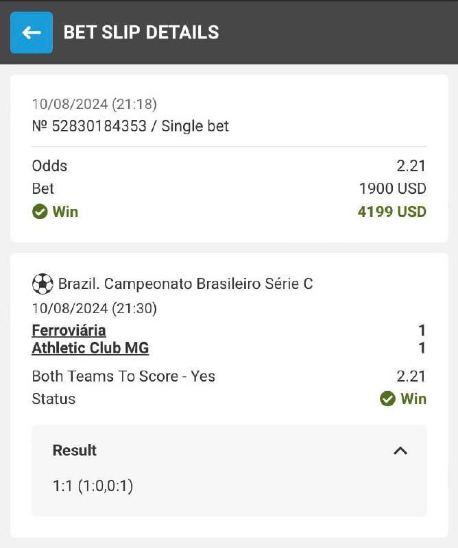 Let me remind new subscribers that they can purchase single betslips also Prices on FIFA esports single betslips (for first time):