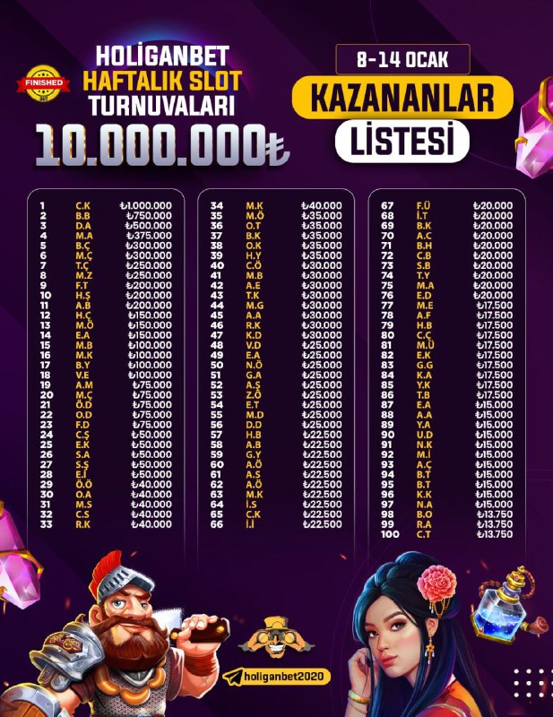 Özel Oranımız ile Kazanan Üyelerimizi Tebrik Ederiz.