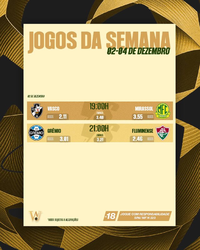 Aproveitem o dia na WJ Casino e completem suas missões! E, a partir de hoje, começa a nossa troca de fornecedora nas apostas esportivas. Joguem com responsabilidade.