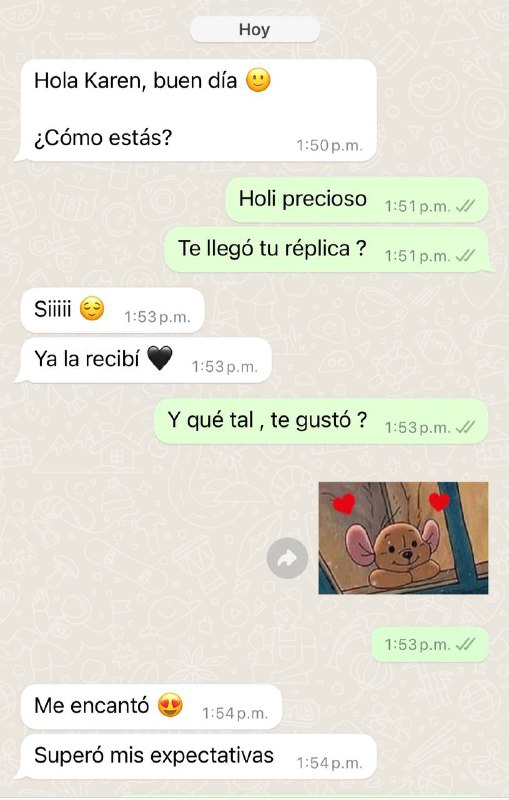 Me hace muy feliz recibir mensajitos inesperados de satisfacción disfruta tu también de mi réplica aquí https://karennpaniagua.com