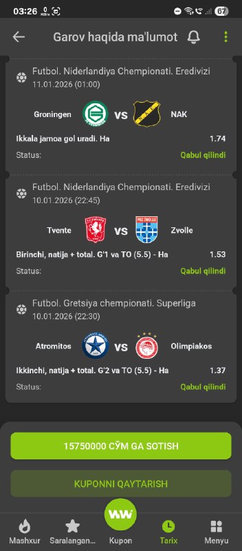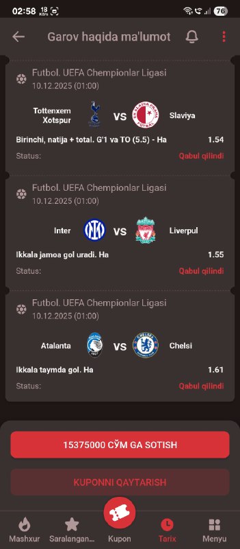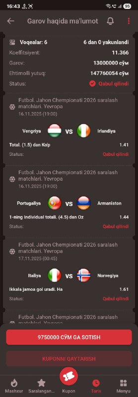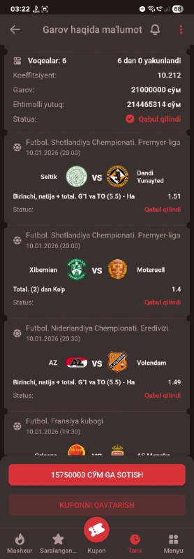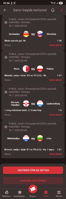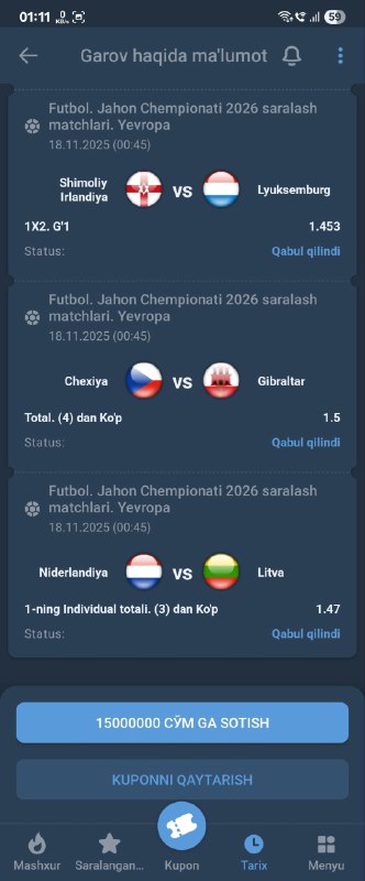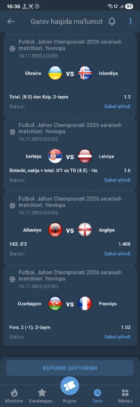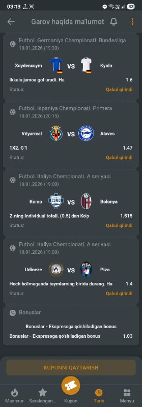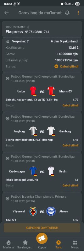 BETON KUPONGA TAYYORMISILA? XAMMA BUKMEKERGA KUPON KODI BOR!GO 500 TA