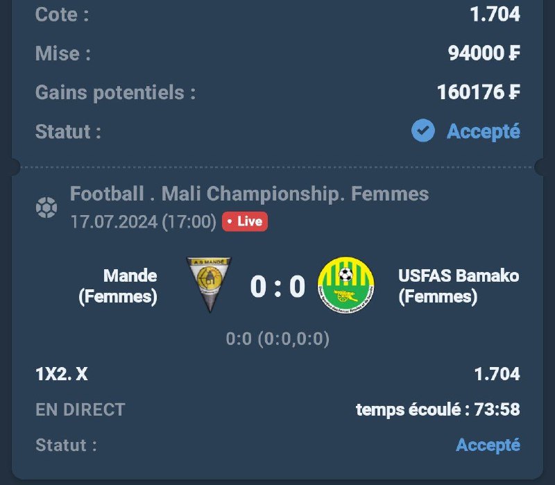 2024-07-17 23:21:05 Les inscriptions sans dépôt on dit non Donc après avoir fait l'inscription complète , tu dois faire un dépôt minimum de 3000 frcfa pour enfin changer de vie