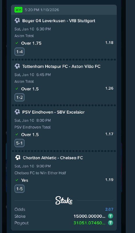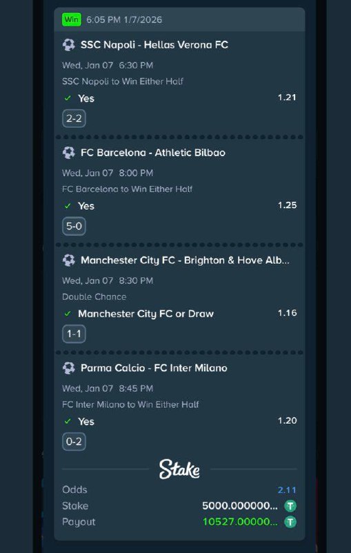 5.2k odds https://stake.com/sports/home?betId=ae8bdb8e-805b-4a01-9ea1-2ec62f7387e1&modal=bet