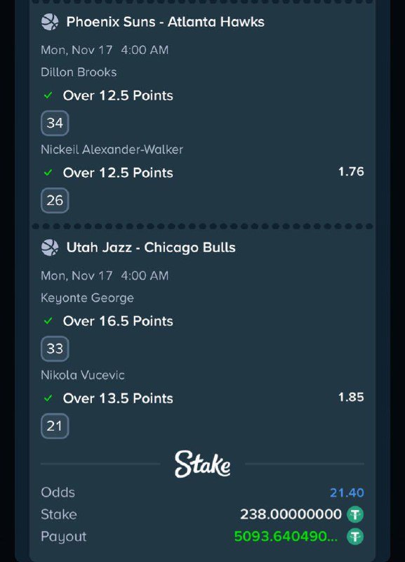 73 odds https://stake.com/sports/home?betId=2ea54a87-d8a4-478e-850c-3c1be7985be3&modal=bet
