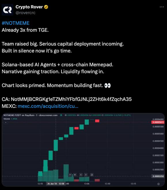 We’ve kept our promises: although we postponed the listing several times, we did it to find the right moment for a strong launch. As many of you know, the geopolitical environment and high market volatility stood in our way (several times). Still, we delivered: on June 26, $NOTMEME officially listed on MEXC and Raydium.
