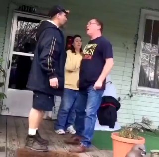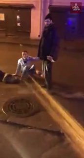Two Russian drunkards getting knocked out by a Russian YouTuber after verbally assaulting the elderly woman.