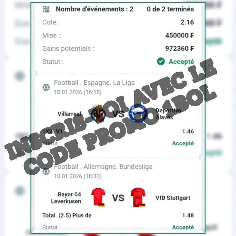 Inscrivez-vous avec le code promo spécial 200% 👉 BOLAPRONO ou 4070 ou BOL