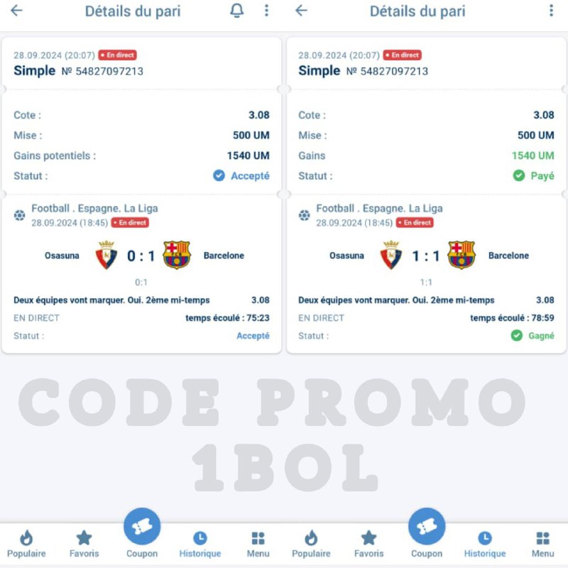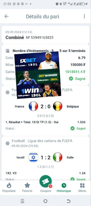 Sur Telegram https://t.me/ParieursGagnants1xbet