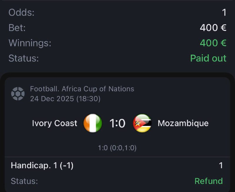 FREE BET OF THE DAY Ivory Coast vs. Mozambique Ivory Coast begin their title defense against one of the weakest teams in the group, holding a clear advantage in quality and experience. Bet: Ivory Coast Handicap -1.0 Stake: 2%