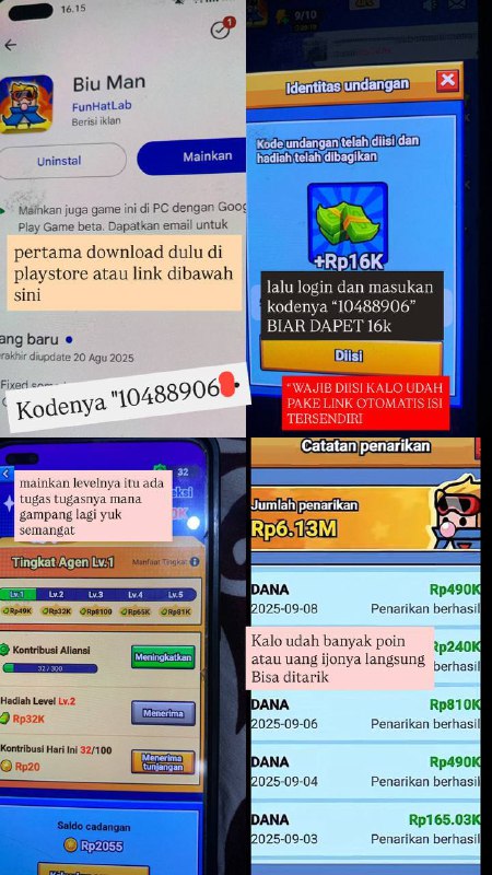 jangan lupa mainkan gamenya guysss tiap game dibayar dikit sedikit lama lama menjadi bukit