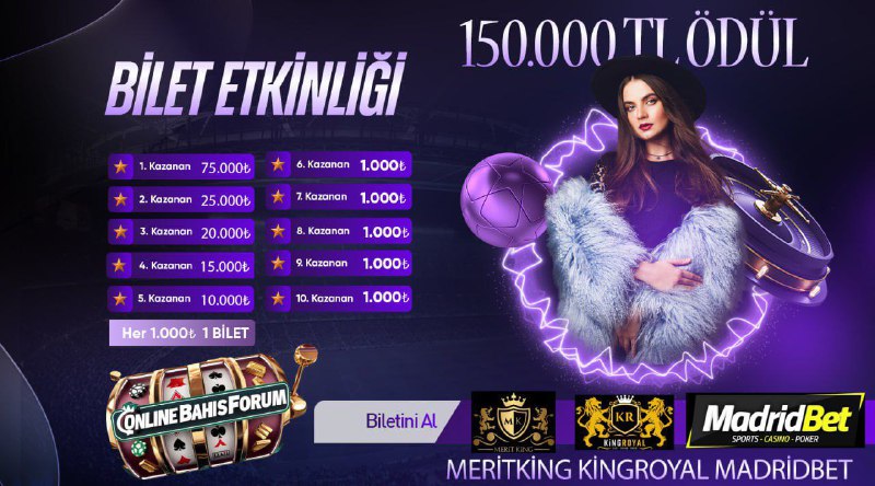 2. MadridBet: İddialı bahislerle dolu, keyifli bir oyun deneyimi sunan MadridBet, bonusları ve promosyonları ile dikkat çekiyor. Hemen üye olarak 100 TL bonus kazanabilirsiniz! Bu fırsatı kaçırmayın ve eğlenceye hemen başlayın! MadridBet'e Üye Olun